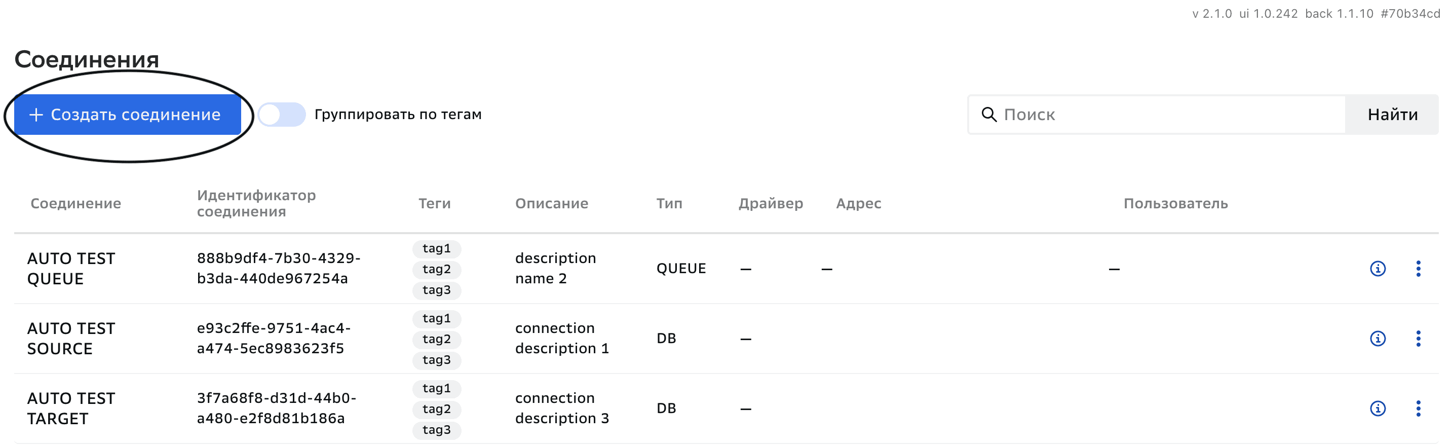 тип — тип соединения: база данных или очередь;