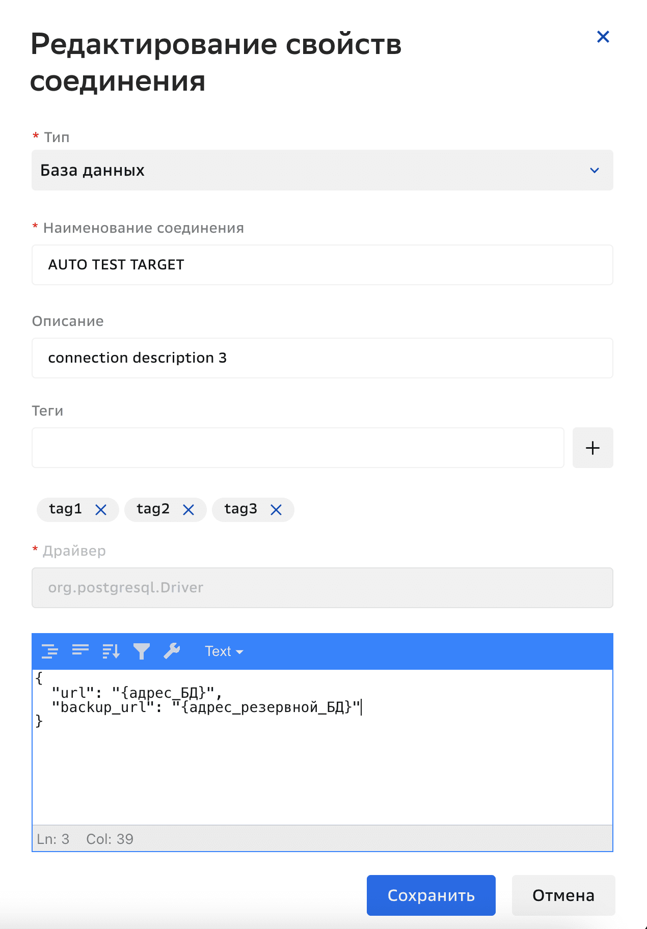 { "url": "jdbc:postgresql://***/postgres", "backup_url": "jdbc:postgresql://***/postgres", "slot": "slot", "publication_names": "publication" "driver": "org.postgresql.Driver" }Параметры соединения с БД Источника