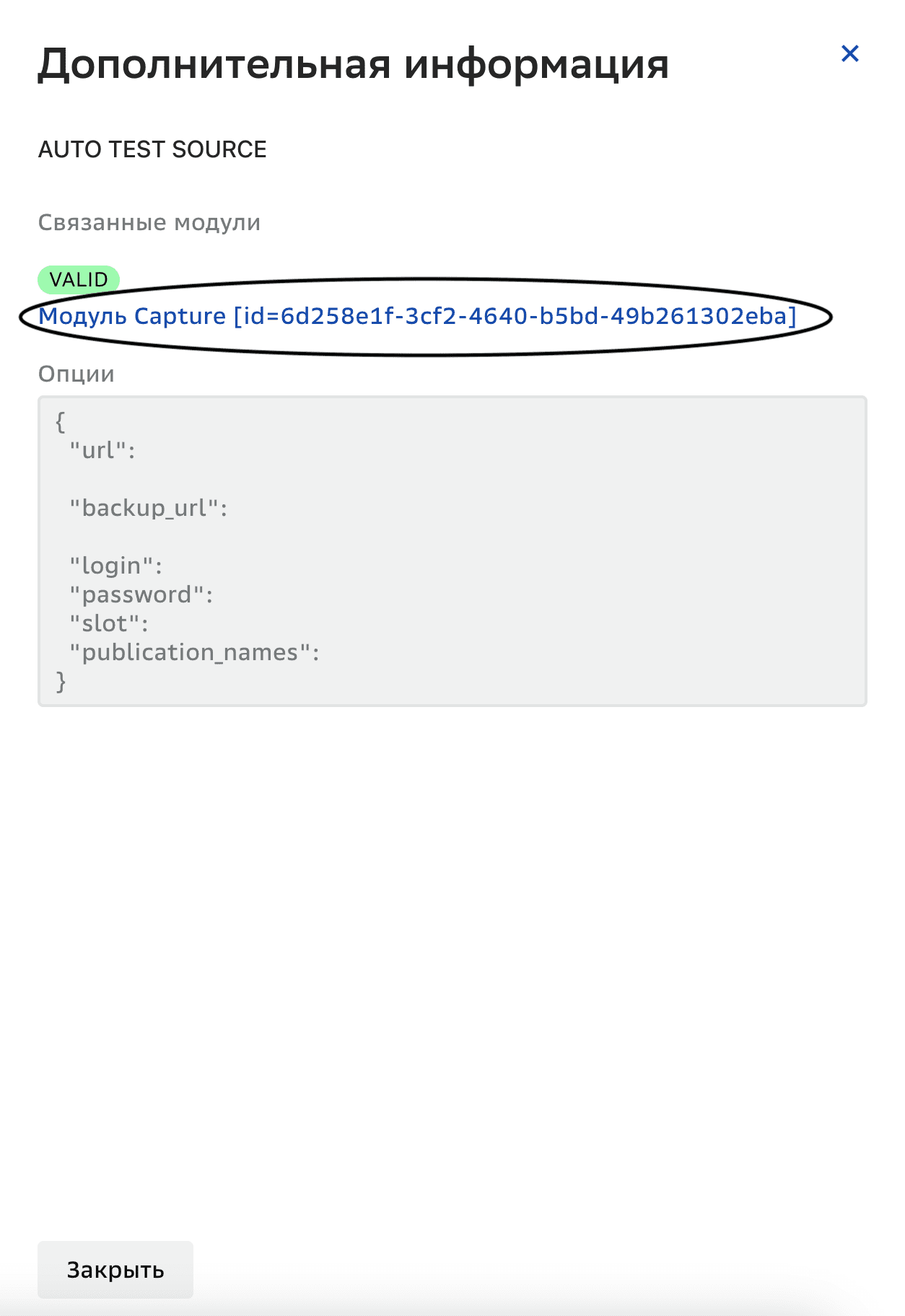рядом с названием соединения.Нажмите на идентификатор модуля в открывшемся окне Дополнительная информация, чтобы посмотреть информацию о модуле, привязанном к соединению.