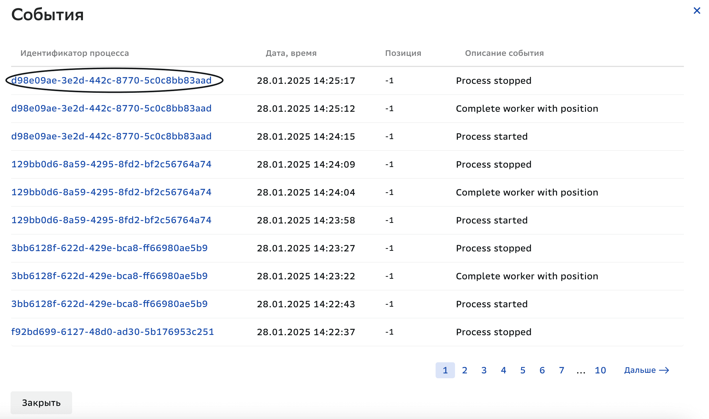 рядом с названием модуля, чтобы посмотреть информацию о событиях, связанных с соединением.Нажмите на идентификатор процесса в открывшемся окне События, чтобы перейти во вкладку Процессы и посмотреть полную информацию о выбранном процессе.