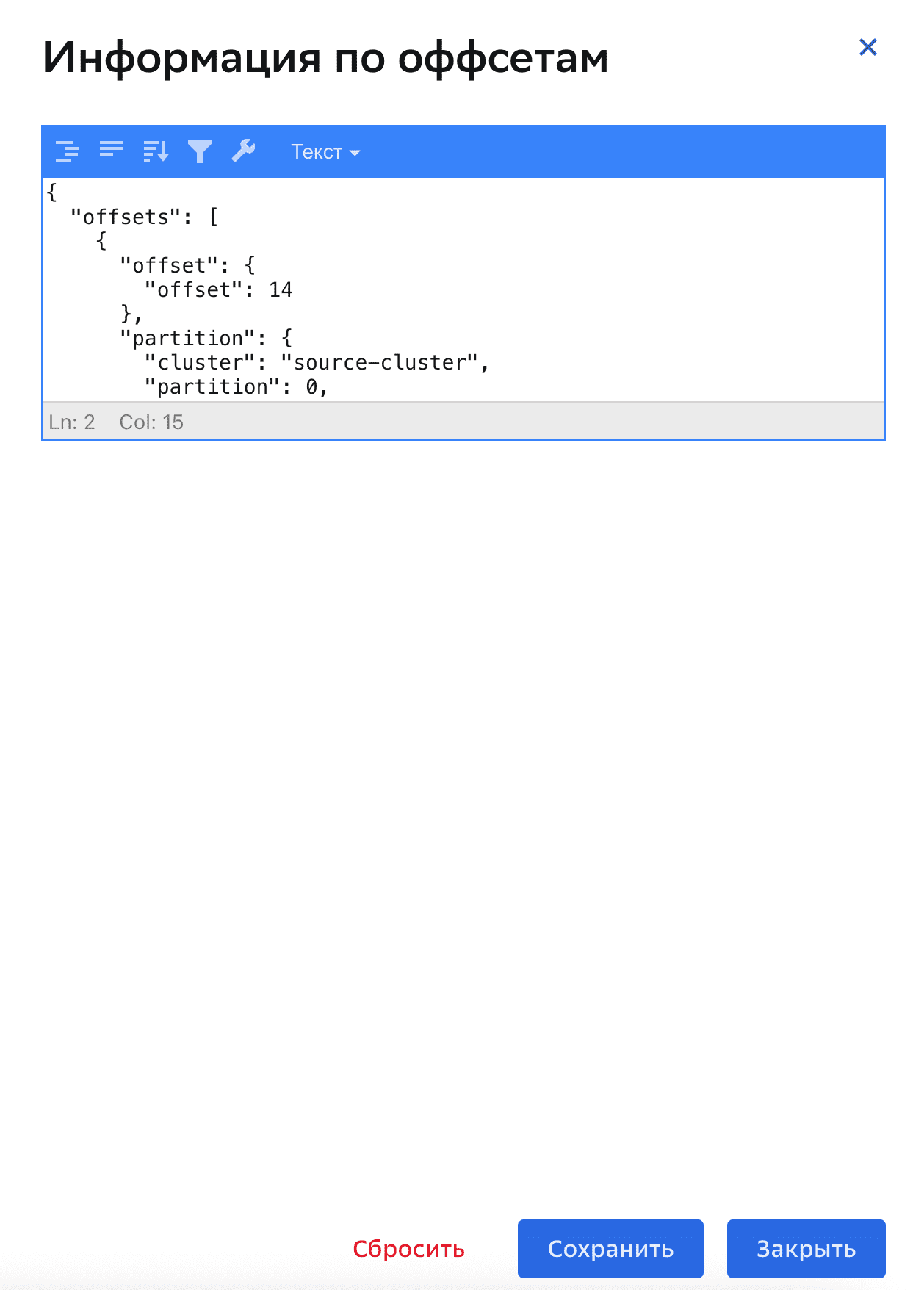поле Оффсеты — редактор JSON.