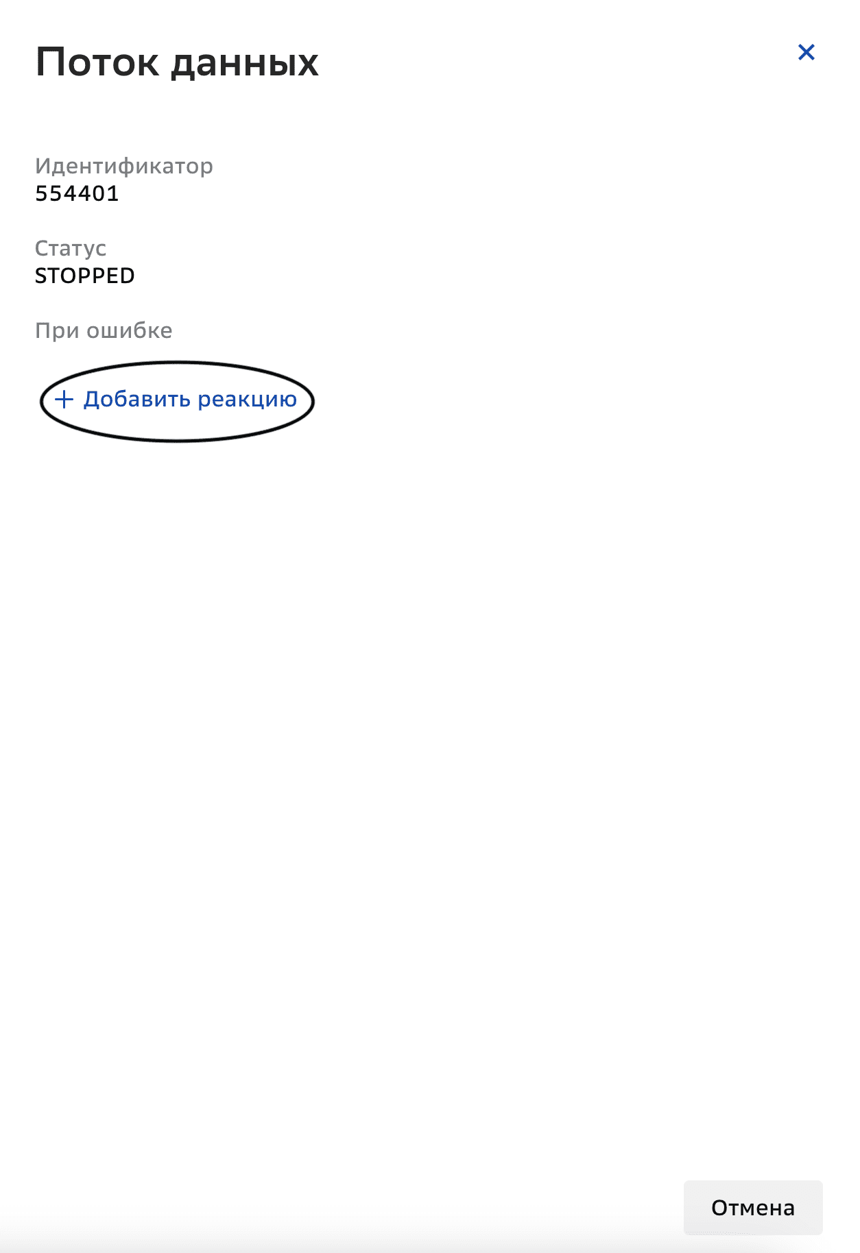 Нажмите Добавить реакцию рядом с полем При ошибке в открывшемся окне Поток данных.