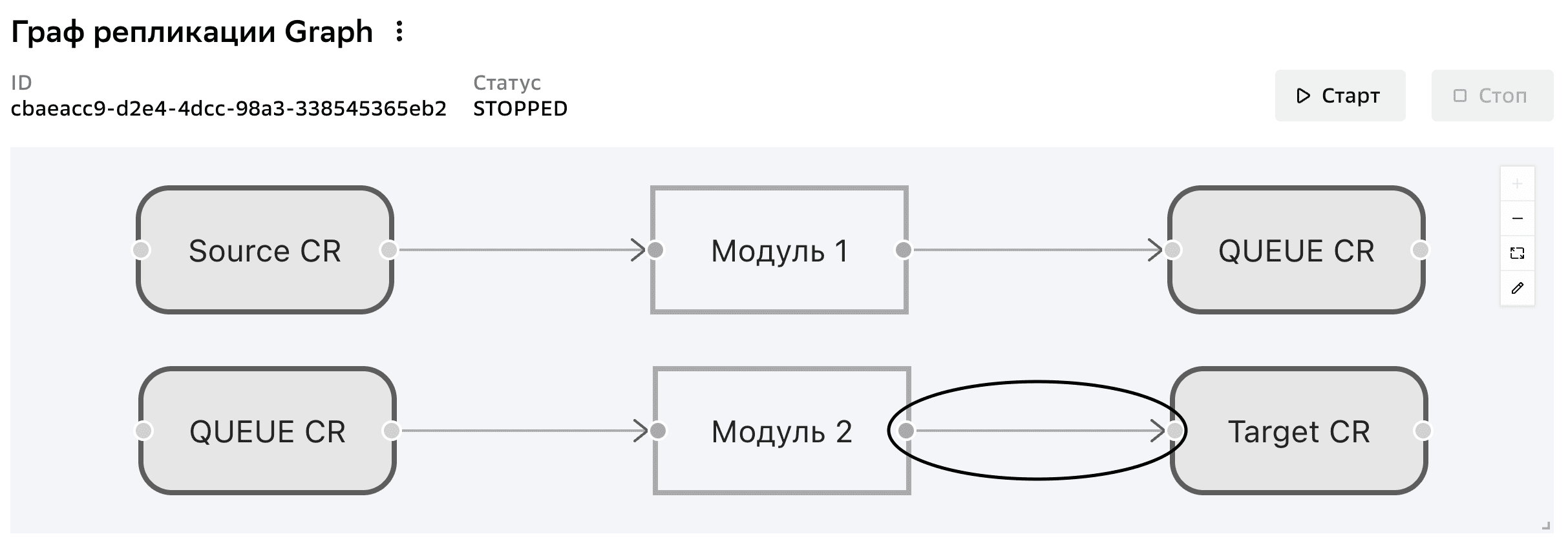Нажмите стрелку графа между соединением и модулем.