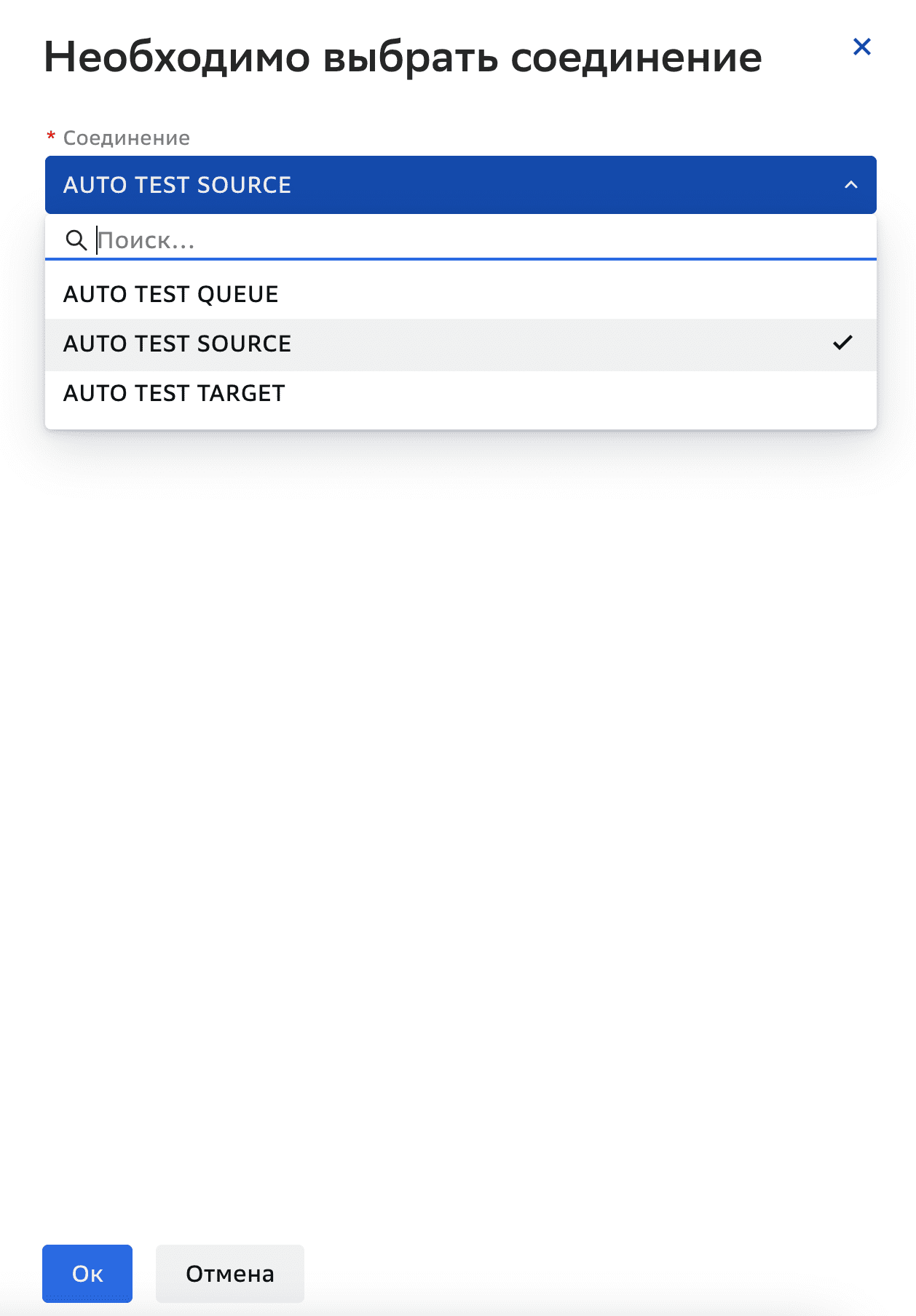 Для элемента Соединение выберите соединение из раскрывающегося списка соединений в окне Необходимо выбрать соединение, которое откроется автоматически при перетаскивании элемента в поле редактирования.