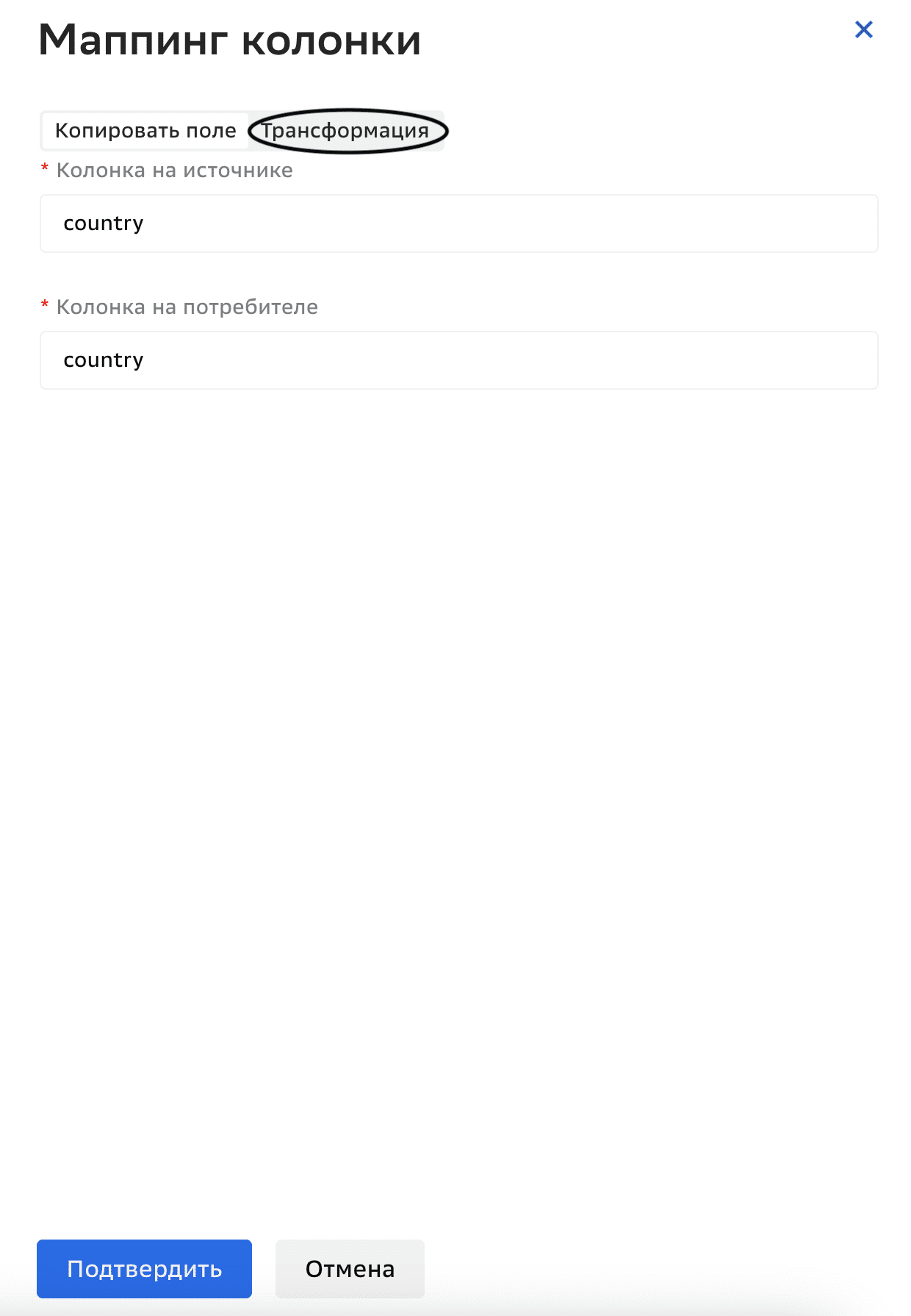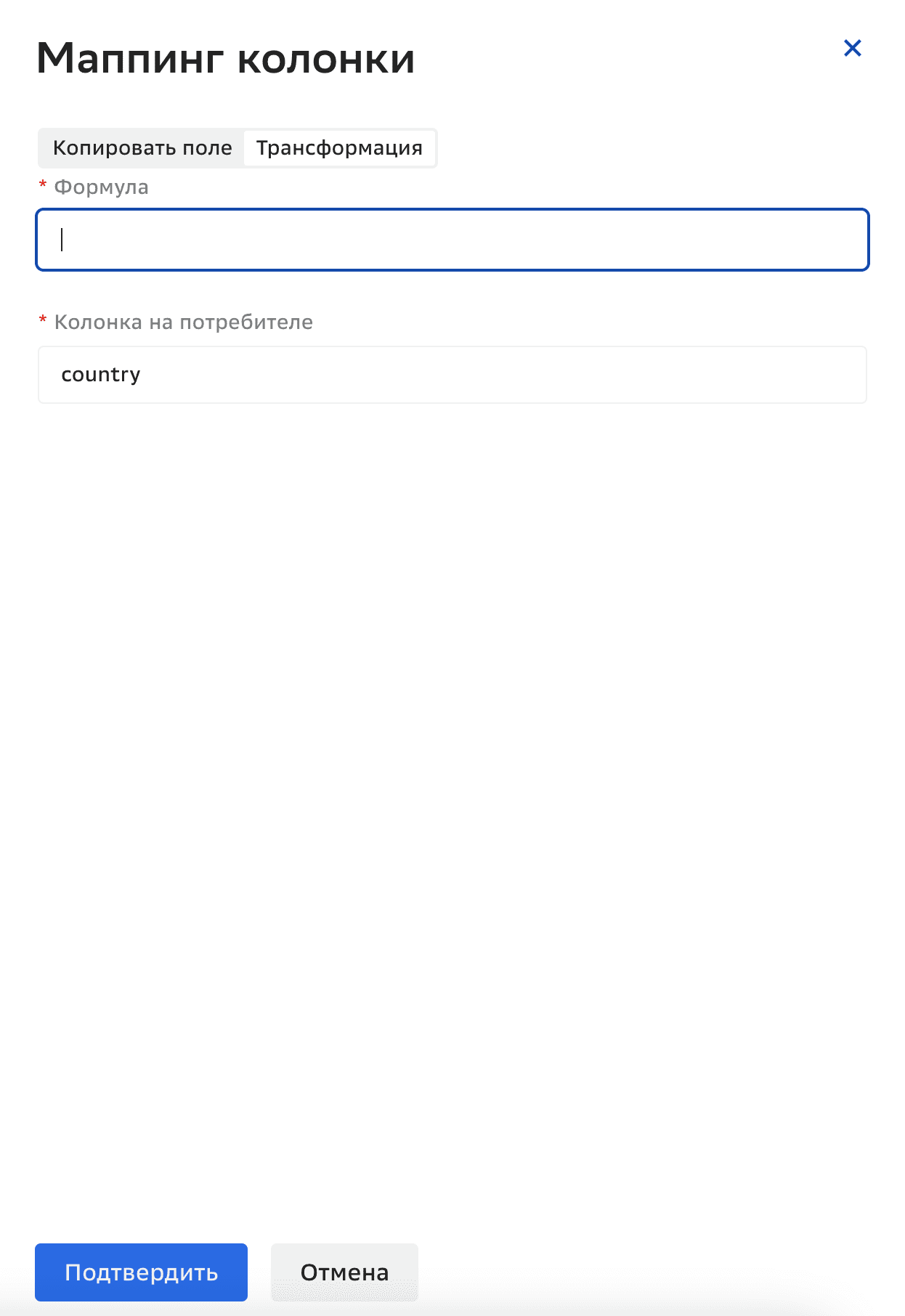 Введите формулу и укажите колонку на потребителе в открывшемся окне Маппинг колонки.