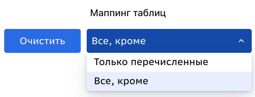 Выберите Только перечисленные или Все, кроме в поле Маппинг таблиц: