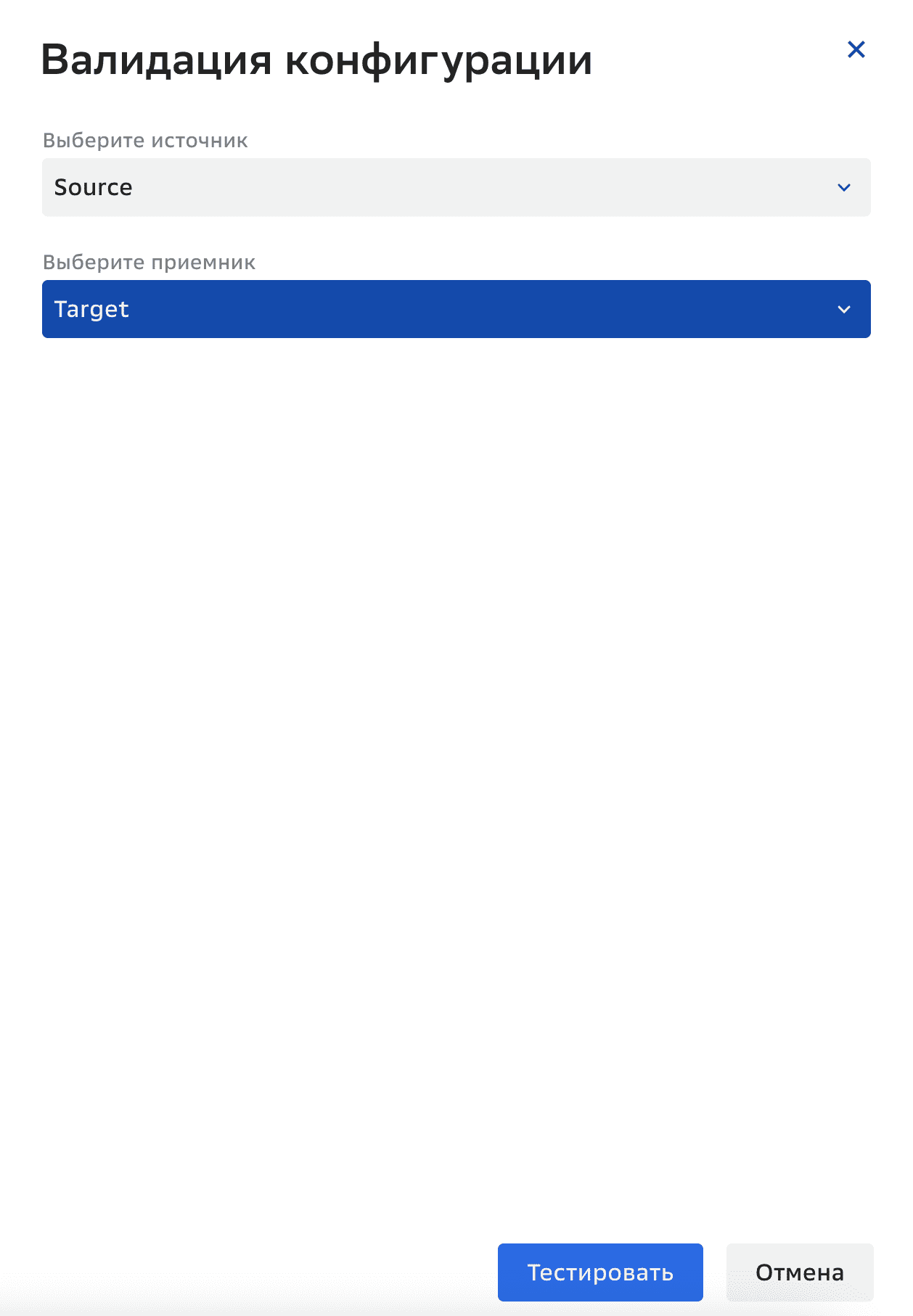 Нажмите Тестировать в открывшемся окне Валидация конфигурации.