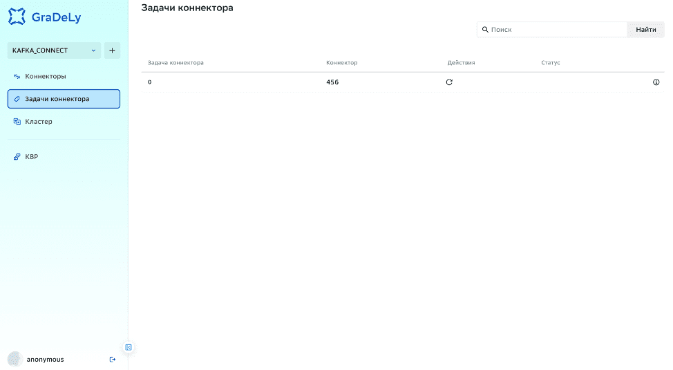 Операции во вкладке Задачи коннектора доступны пользователю с ролями APPADMIN, APPDUTY и INSPECTOR.