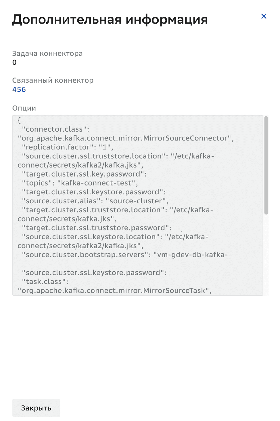 Для просмотра дополнительной информации о задаче коннектора:
