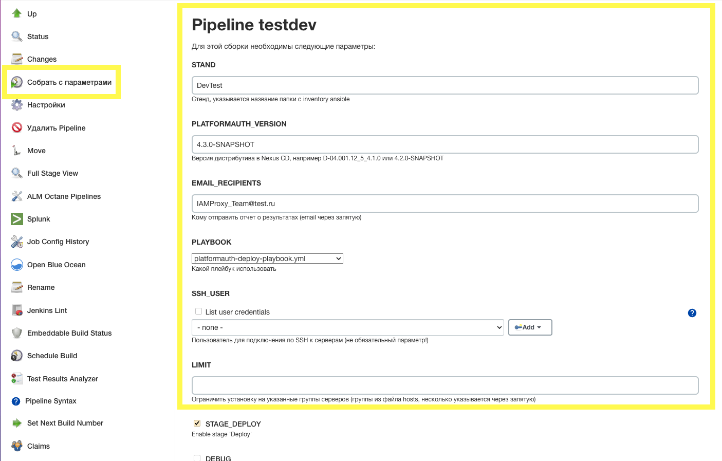 в файле ansible/platformauth-deploy-playbook.yml. Версия дистрибутива сервиса указывается при запуске