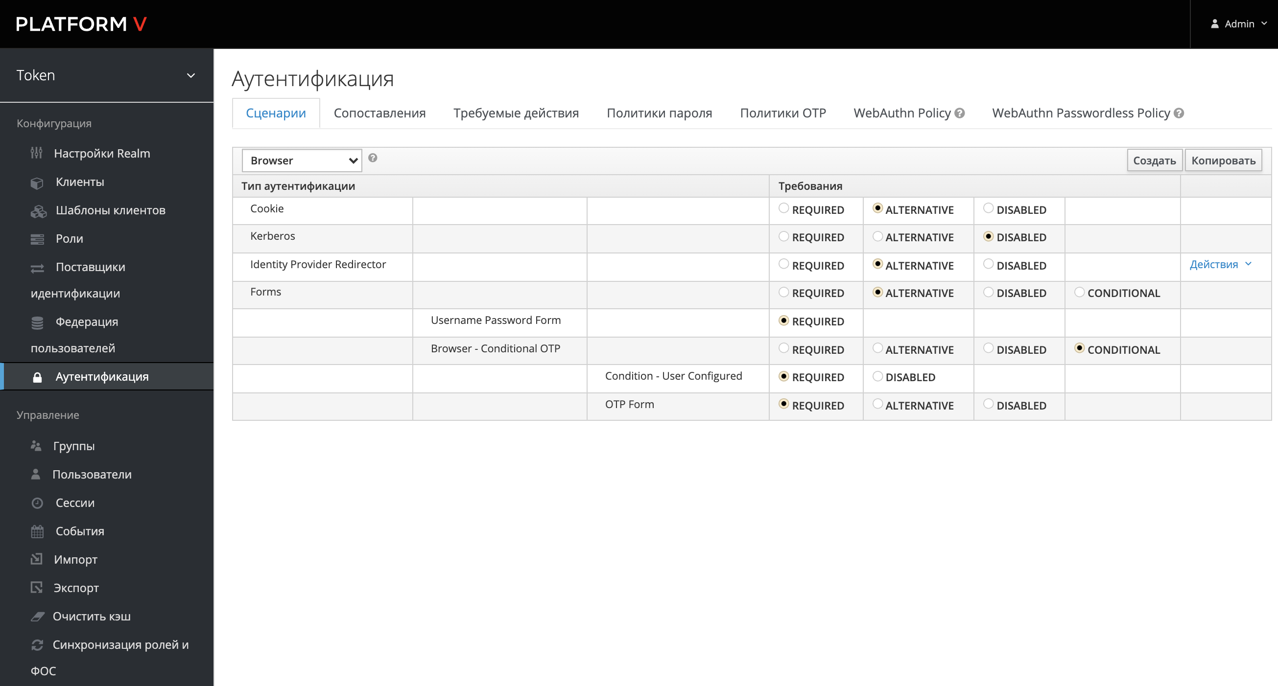 Следующим выполнением является Condition - User Configured. Здесь проверяется, настроены ли другие исполнения в потоке для пользователя. Это означает, что подпоток Browser - Conditional OTP будет выполнен только в том случае, если у пользователя настроена учетная запись OTP.