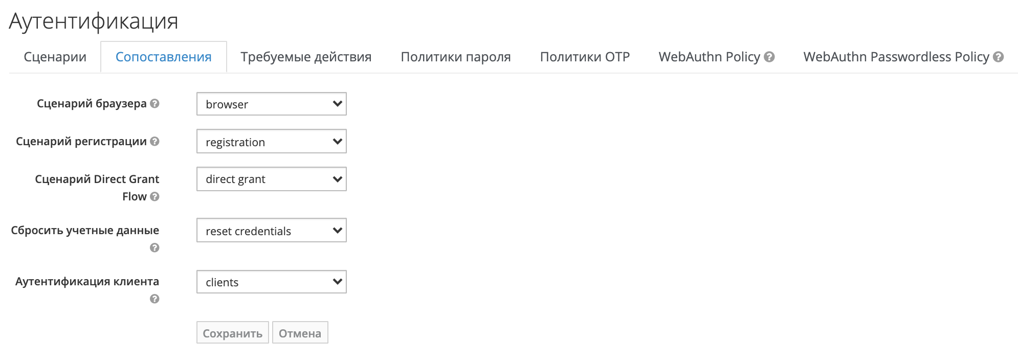 На рисунке ниже изображено окно сопоставления сценариев аутентификации.