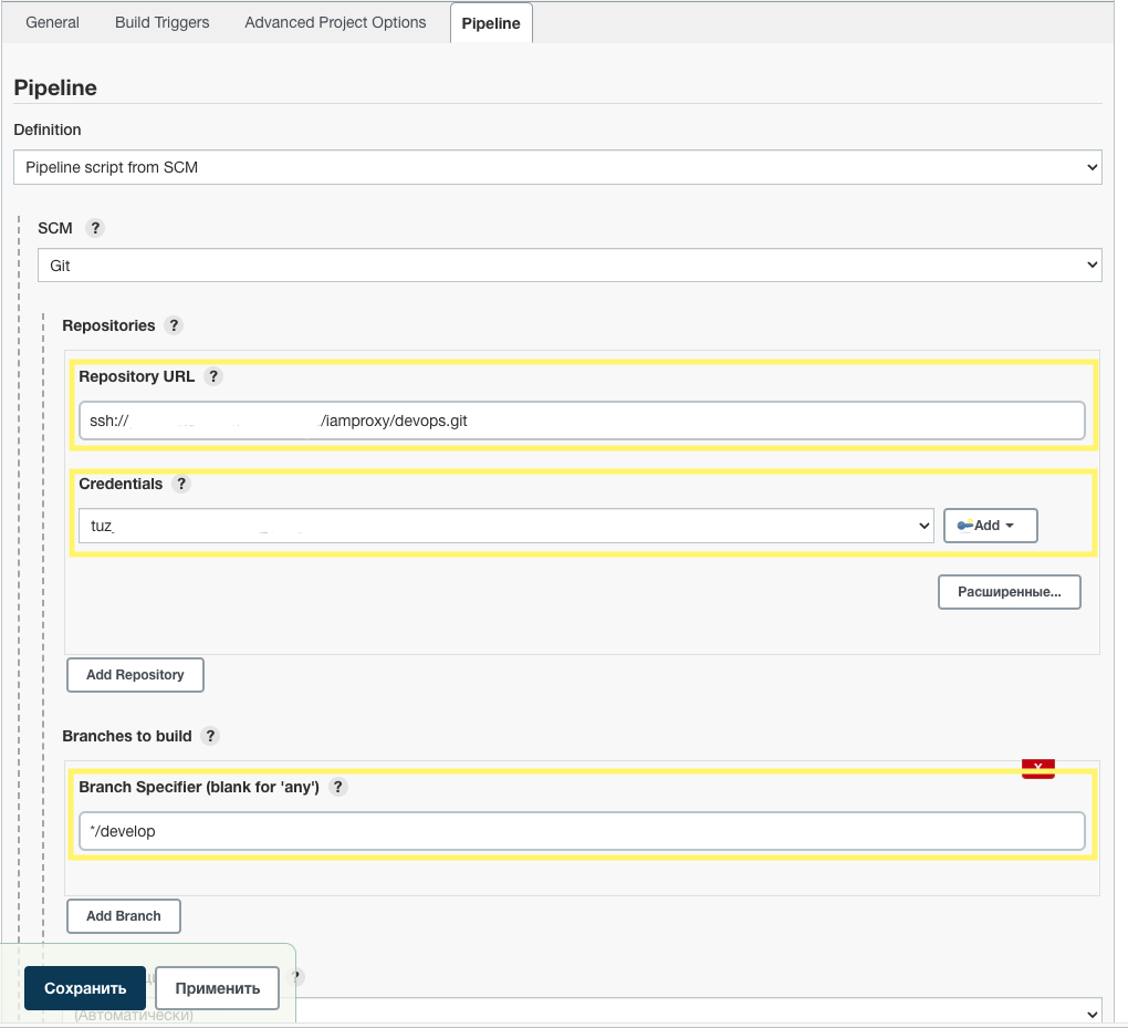 При необходимости, получить новые проектные области или доступ к существующим областям инструментов DevOps (Git, Jenkins). Обеспечить чтобы на используемых Jenkins агентах был установлен Ansible 2.9+.
