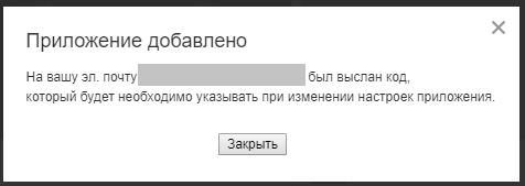 Откроется модальное окно с сообщением, что на электронную почту отправлены настройки приложения.