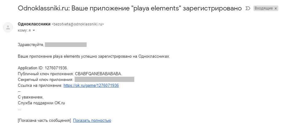 Подтверждение регистрации приложения в электронной почте#