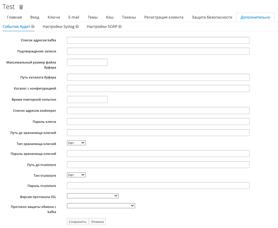 Ниже изображено окно настройки модуля отправки событий KeyCloak.SE в Platform V Audit.