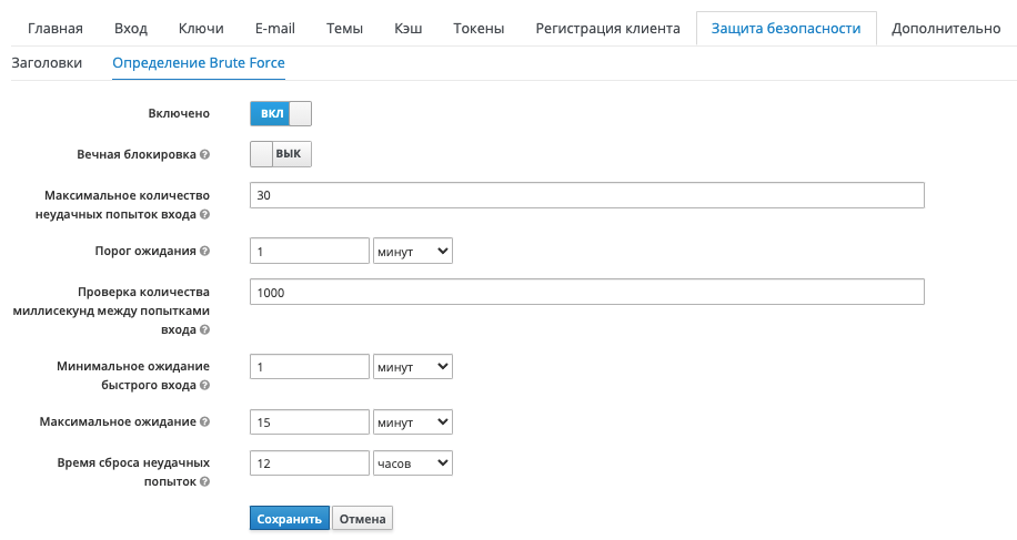 Статус Realm. Пользователи и клиенты могут получить доступ к Realm только если он включен |