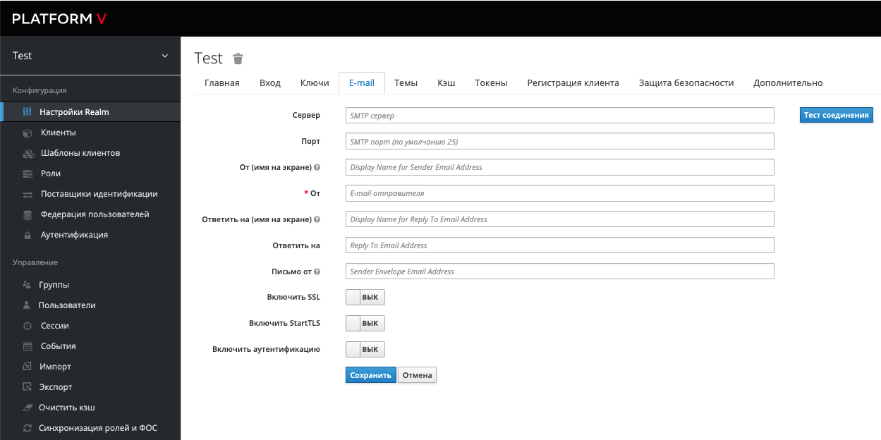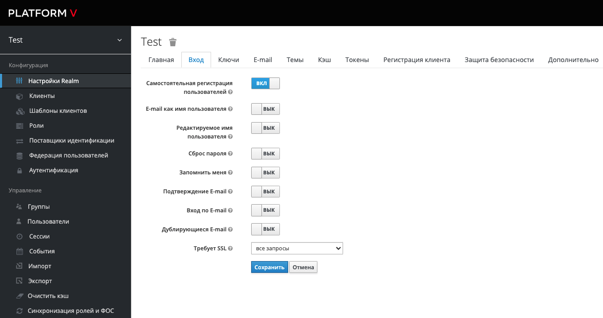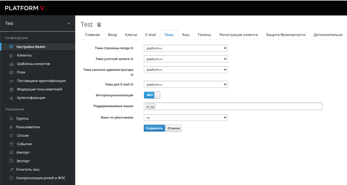 Управление Realm осуществляется через вкладку "Настройки Realm".