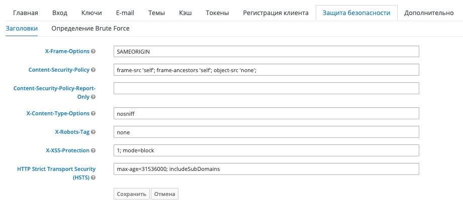 В таблице представлено детальное описание интерфейса настройки параметров realm.
