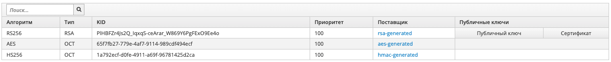 При создании realm, автоматически генерируется пара ключей и самозаверяющий сертификат.