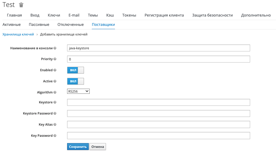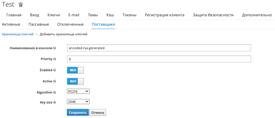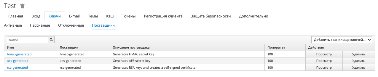 Keycloak одновременно имеет одну активную пару ключей, но может иметь и несколько пассивных ключей. Активная пара ключей используется для создания новых подписей, а пассивные пары ключей могут использоваться для проверки предыдущих подписей. Это позволяет регулярно менять ключи без простоев и перерывов для пользователей.