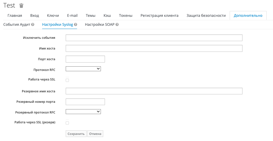 Ниже изображено окно настройки для передачи событий в Syslog.