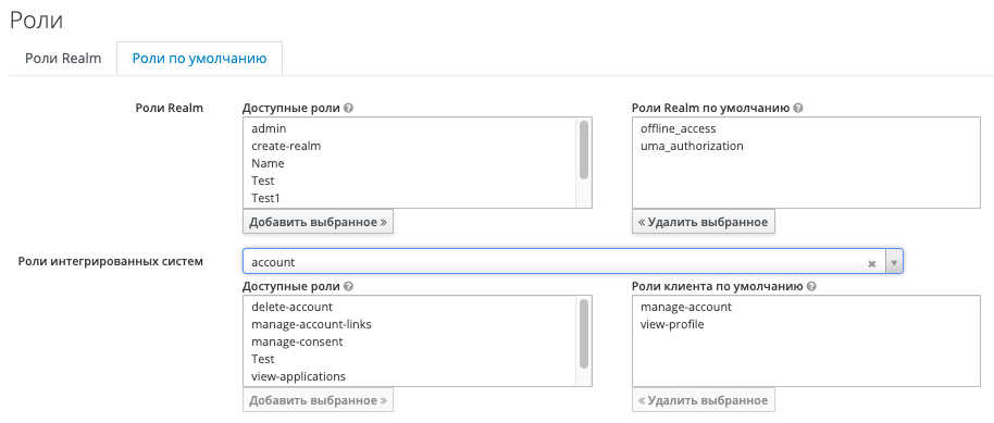 Роли из этого клиента, которые могут быть назначены по умолчанию. |