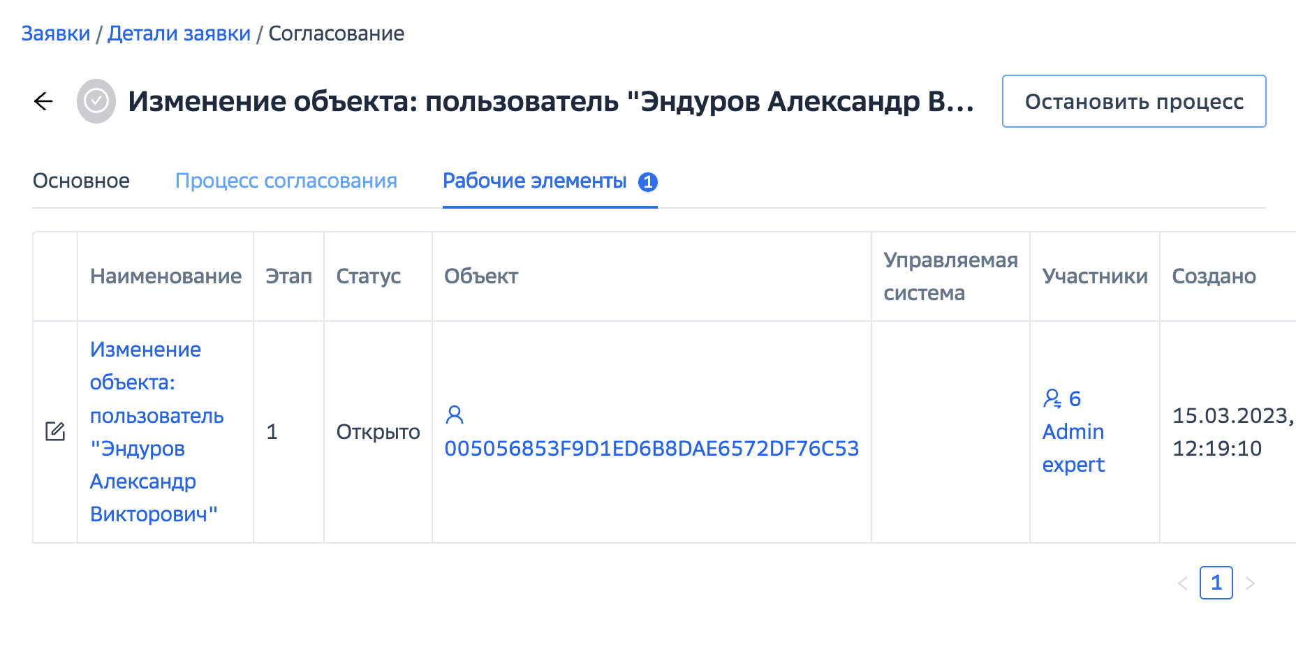 На вкладке Рабочие элементы приведен список всех элементов, которые должны быть обработаны в процессе согласования: