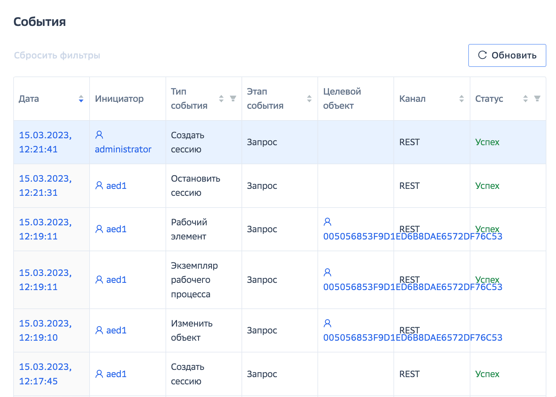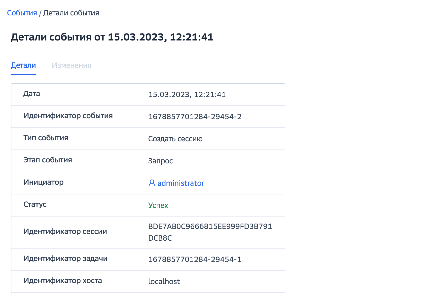 Каждое из событий можно открыть для просмотра деталей, перейдя по ссылке в поле Дата.