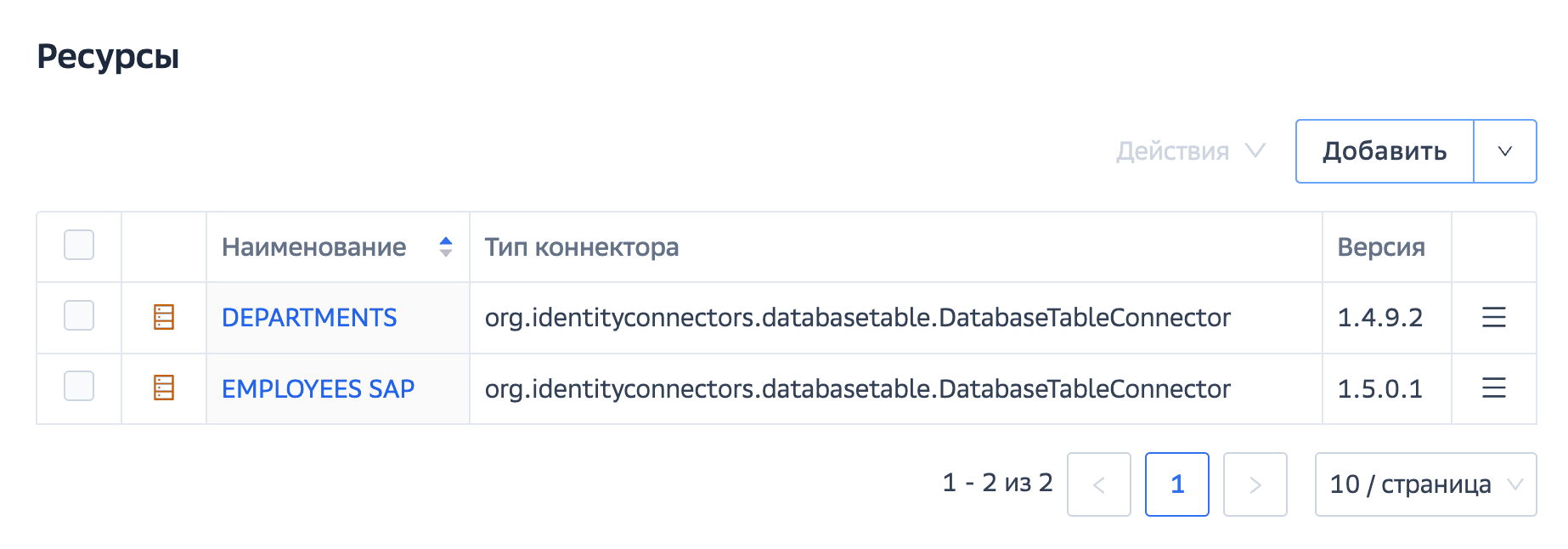 Управление списком ресурсов выполняется в разделе Ресурсы.