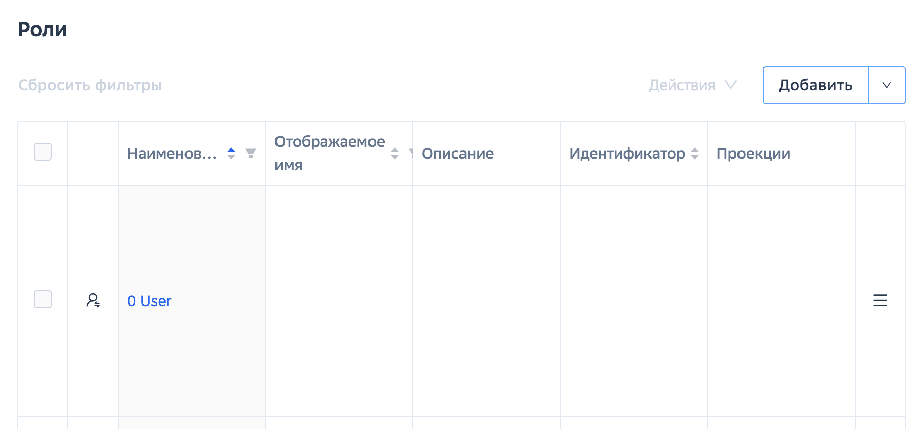 В разделе Проекции администратор может просмотреть список учетных записей пользователя во внешних системах. Создавать вручную проекции в данной версии IDMX нельзя, они создаются автоматически, если у пользователя есть соответствующее назначение на внешний ресурс, или роль или организацию, наделяющую его назначением на ресурс.