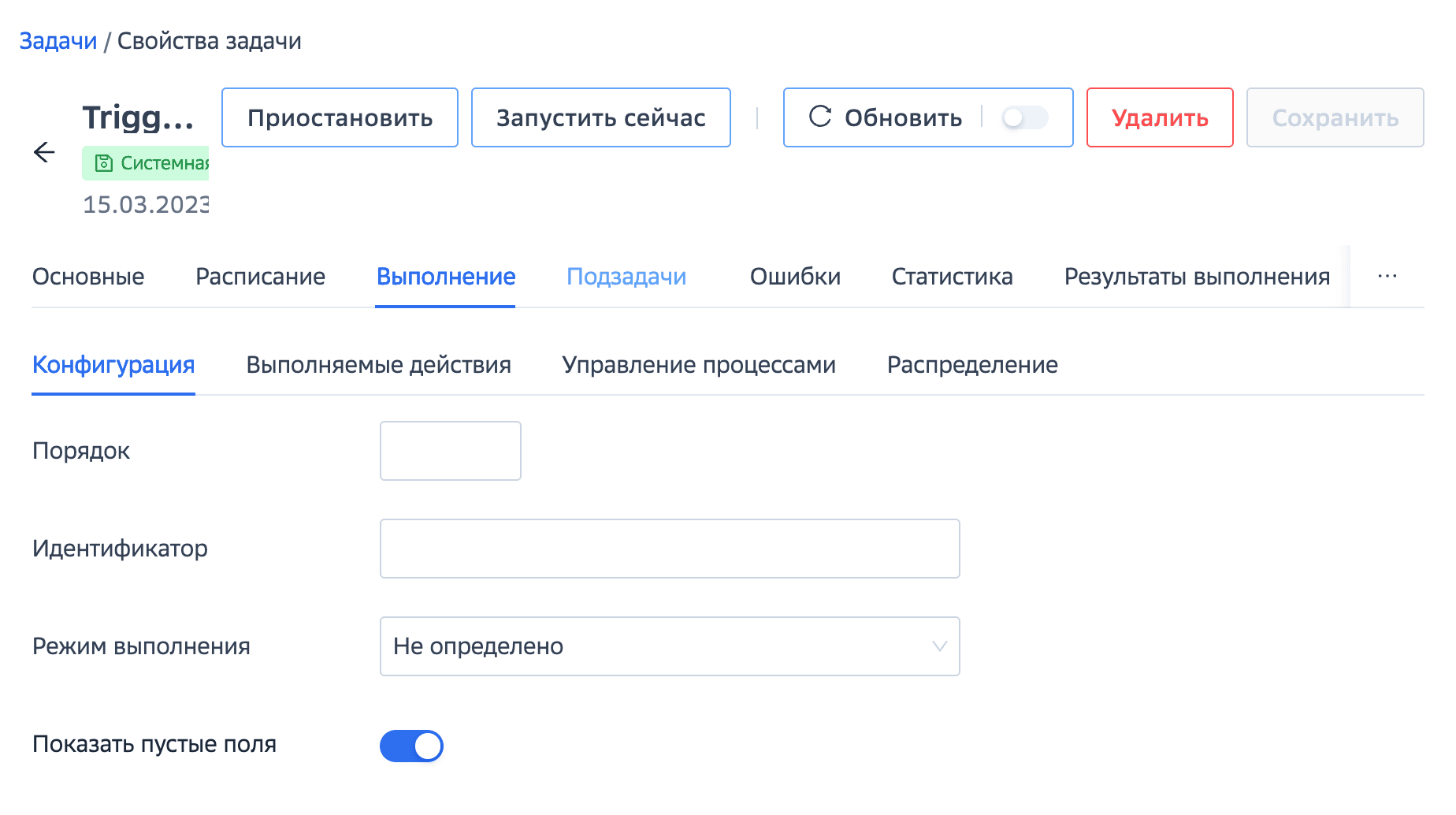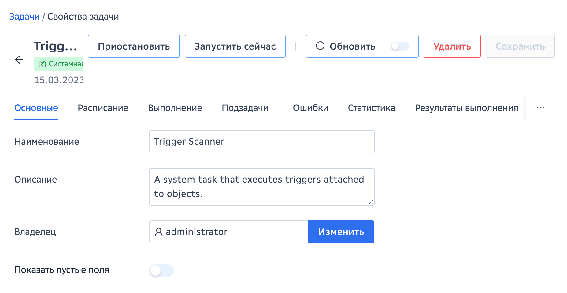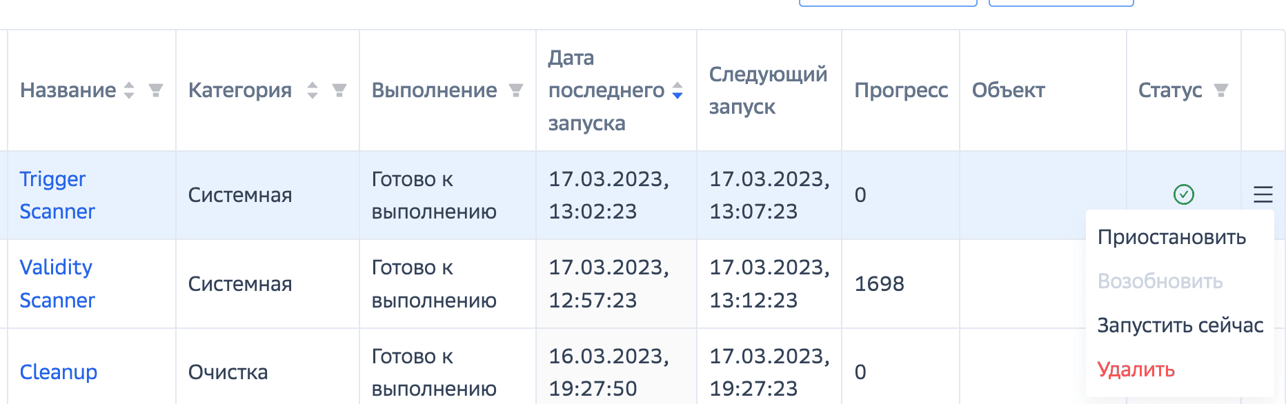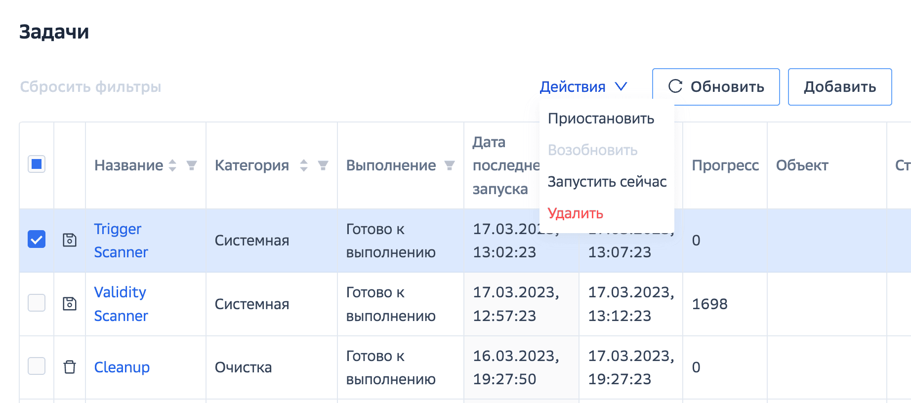 Администратор может приостановить исполнение, возобновить исполнение, запустить задачу немедленно (без помещения в очередь задач) или удалить одну или несколько задач. Для этого следует: