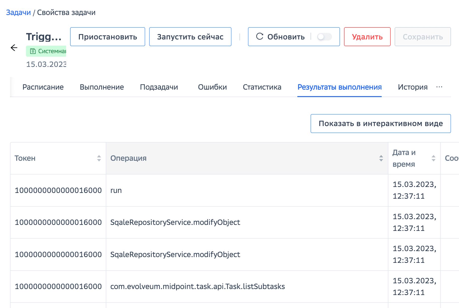 На вкладке Результаты выполнения отображаются результаты выполнения всех операций, входящих в задачу: