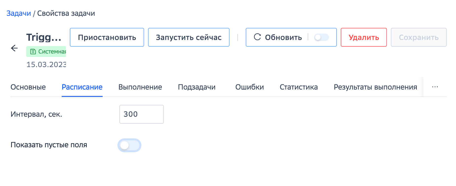 На вкладке Расписание можно вручную задать или изменить расписание автоматического запуска задачи: