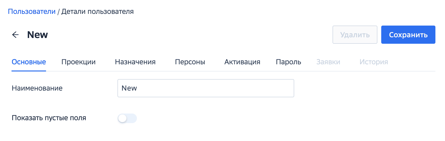 Управление учетными карточками пользователей выполняется в разделе Пользователи.