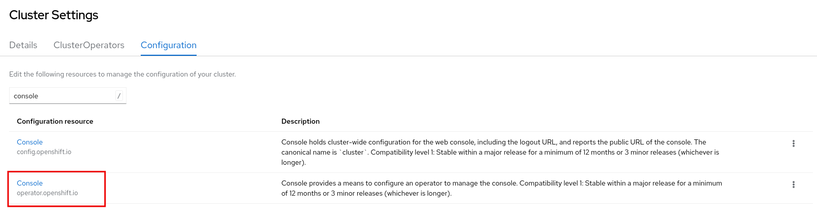 Отключите OKD console отредактировав consoles.operator.io ресурс: