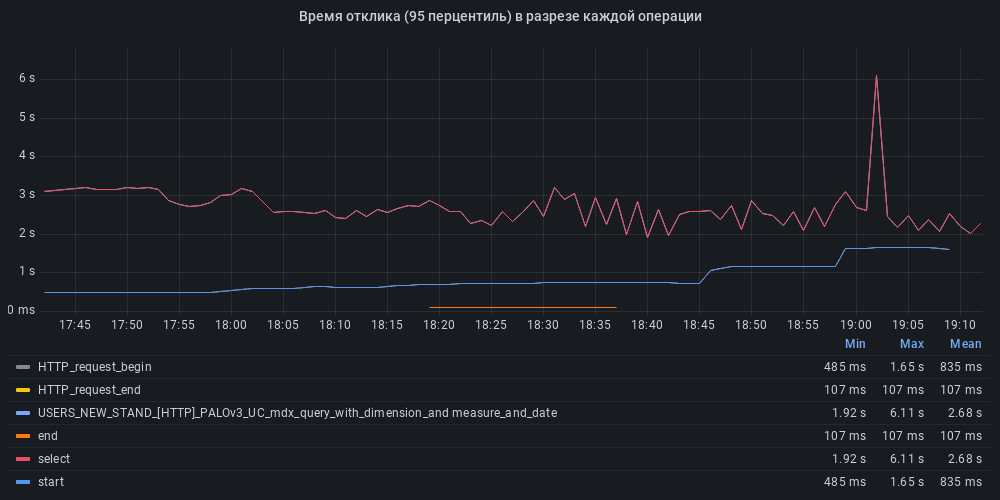 Количество виртуальных пользователей, подающих нагрузку — 50.