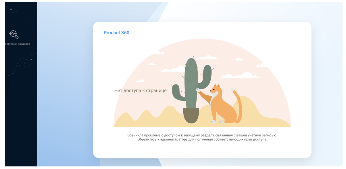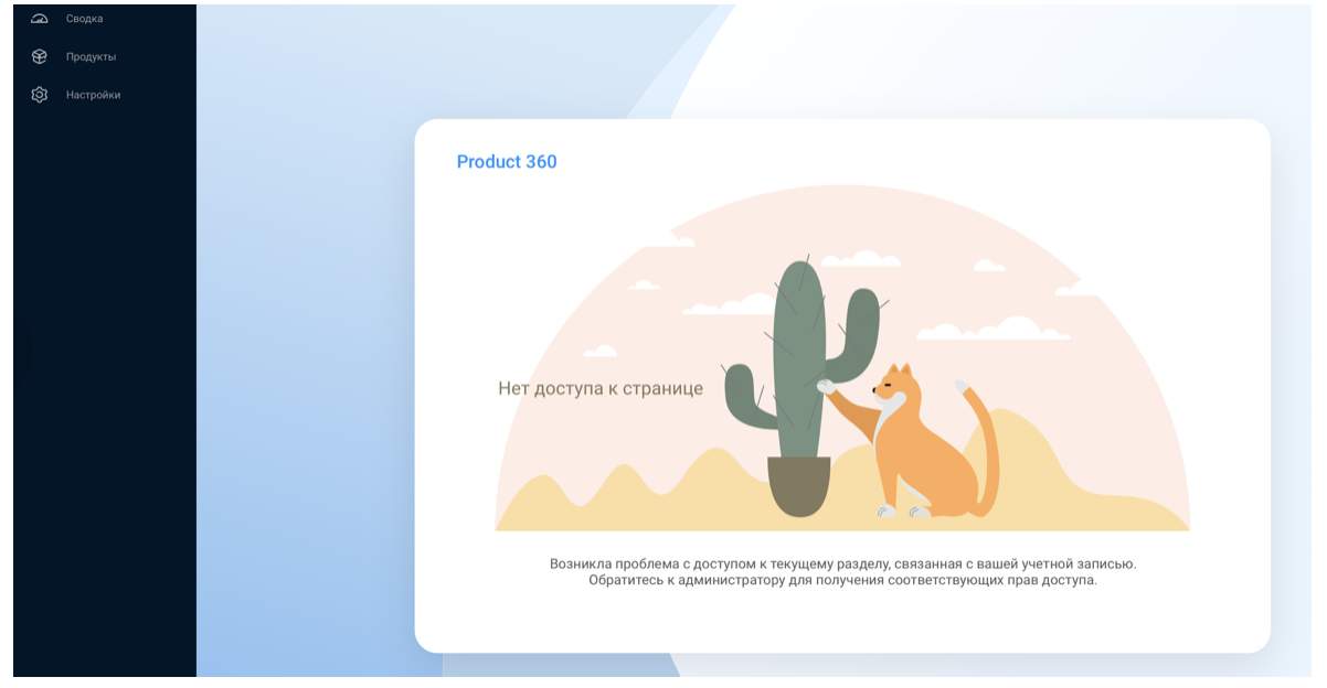 1. Администратор должен добавить пользователя в Product360. 2.Если пользователя не удается добавить – проверить есть ли пользователь в SPAS и назначены ли пользователю необходимые роли |