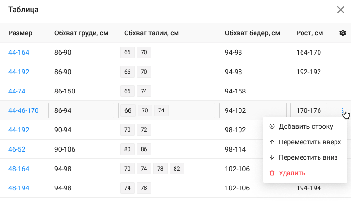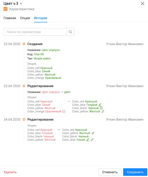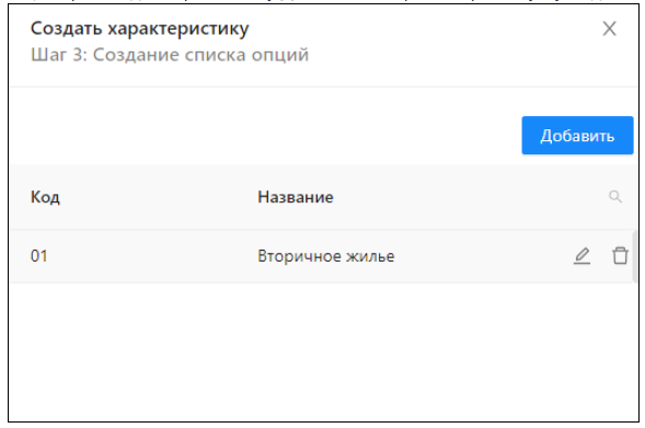 после чего данная опция будет создана. Возможно ее редактирование и удаление. Добавление дополнительных опций происходит через кнопку Добавить в верхнем правом углу модально окна