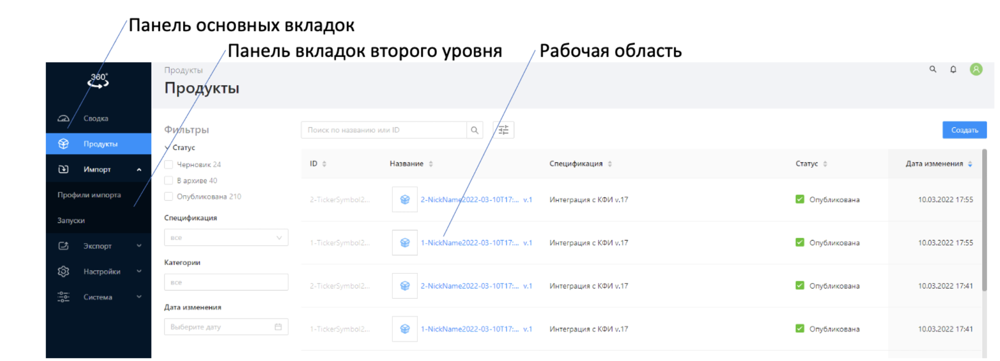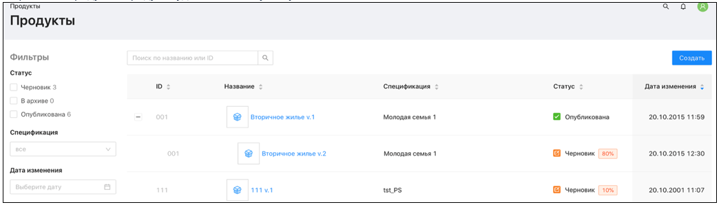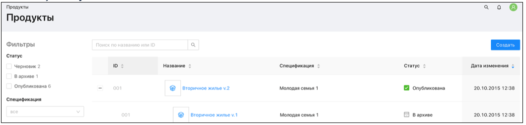 опубликованы – опубликованные продукты.