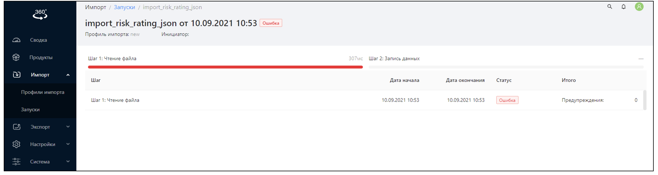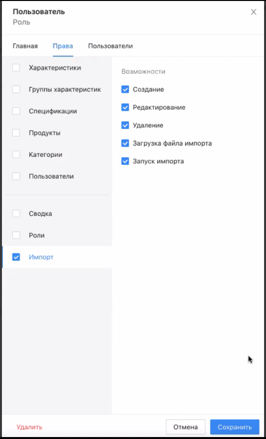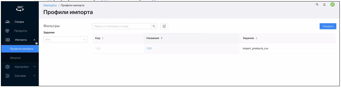 Профиль импорта содержит настройки для импорта, которыми управляет Пользователь |