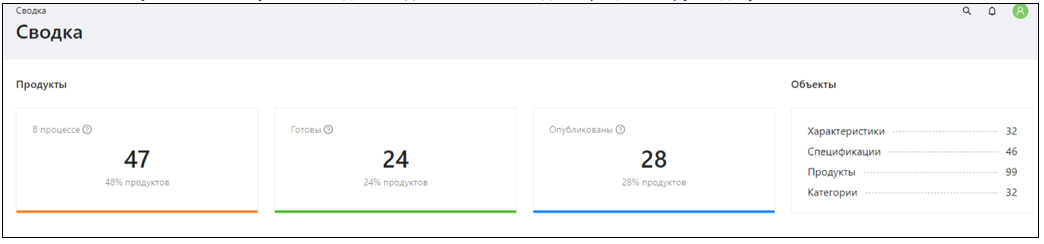 Объекты – в этом разделе выводится количество объектов, заведенных в каталоге.