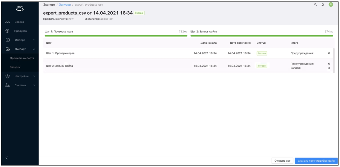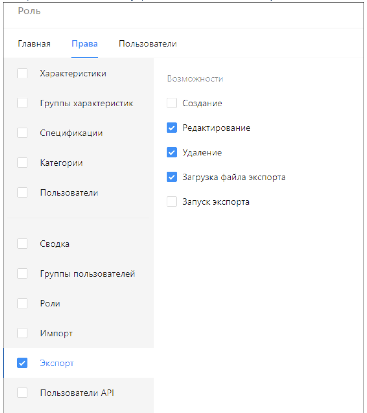 Профиль экспорта содержит настройки для экспорта, которыми управляет Пользователь |