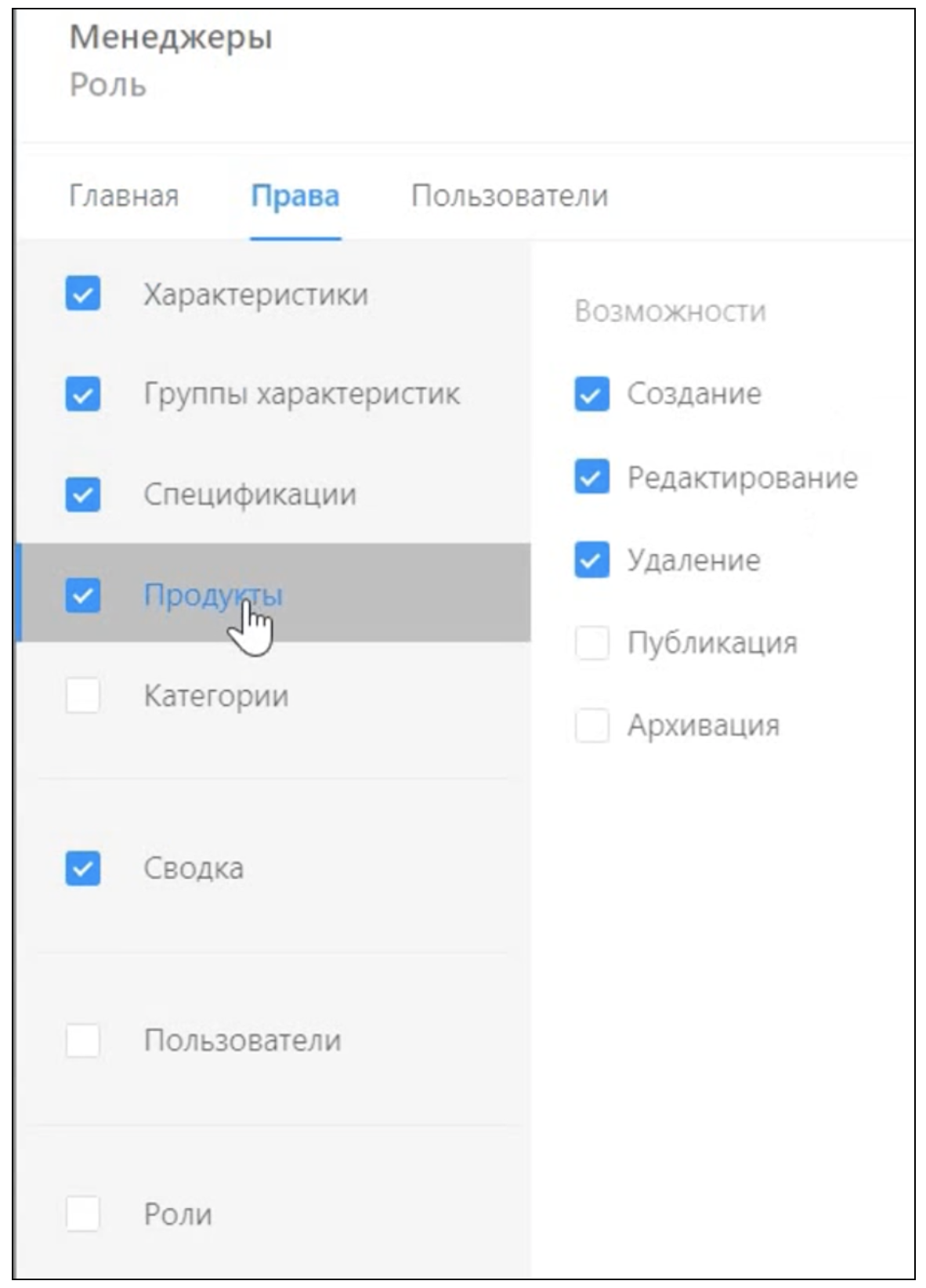 Роли пользователей, доступные для работы в пользовательском интерфейсе: