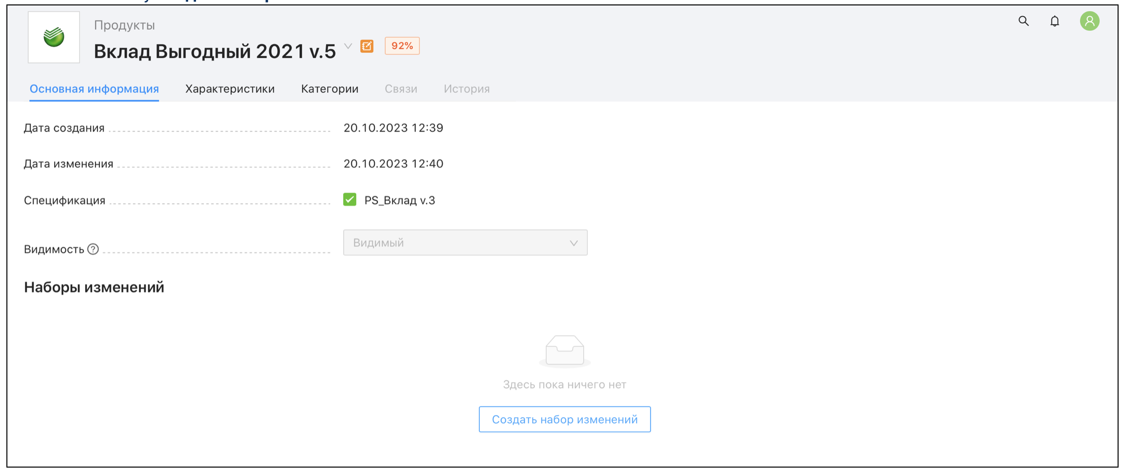 Продуктовая спецификация. Набор характеристик для описания Продуктового предложения |