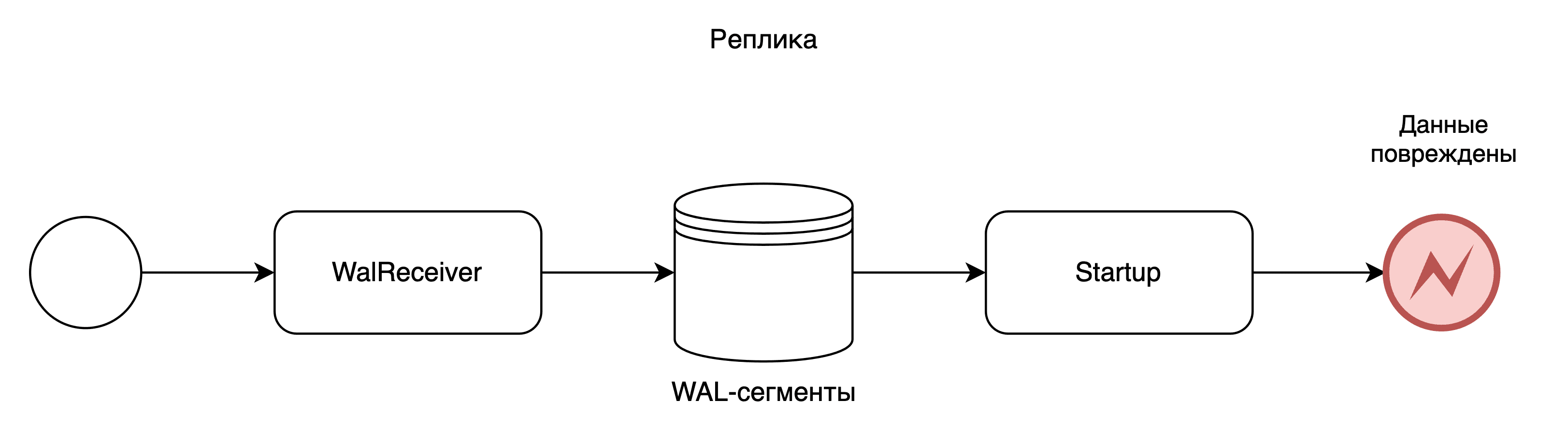 Повреждение возможно не только в WAL-записях, но и в заголовках WAL-блоков, так как эти данные не защищены контрольной суммой. Некоторые поля могут быть проверены логически, но поля с битовыми флагами, а также таймлайны подлежат только проверке на валидность и не могут быть однозначно верифицированы.