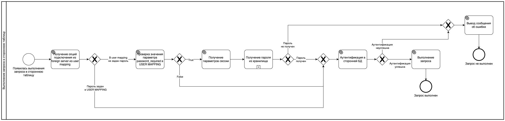 Схема процесса «выполнение запроса в стороннюю таблицу»#
