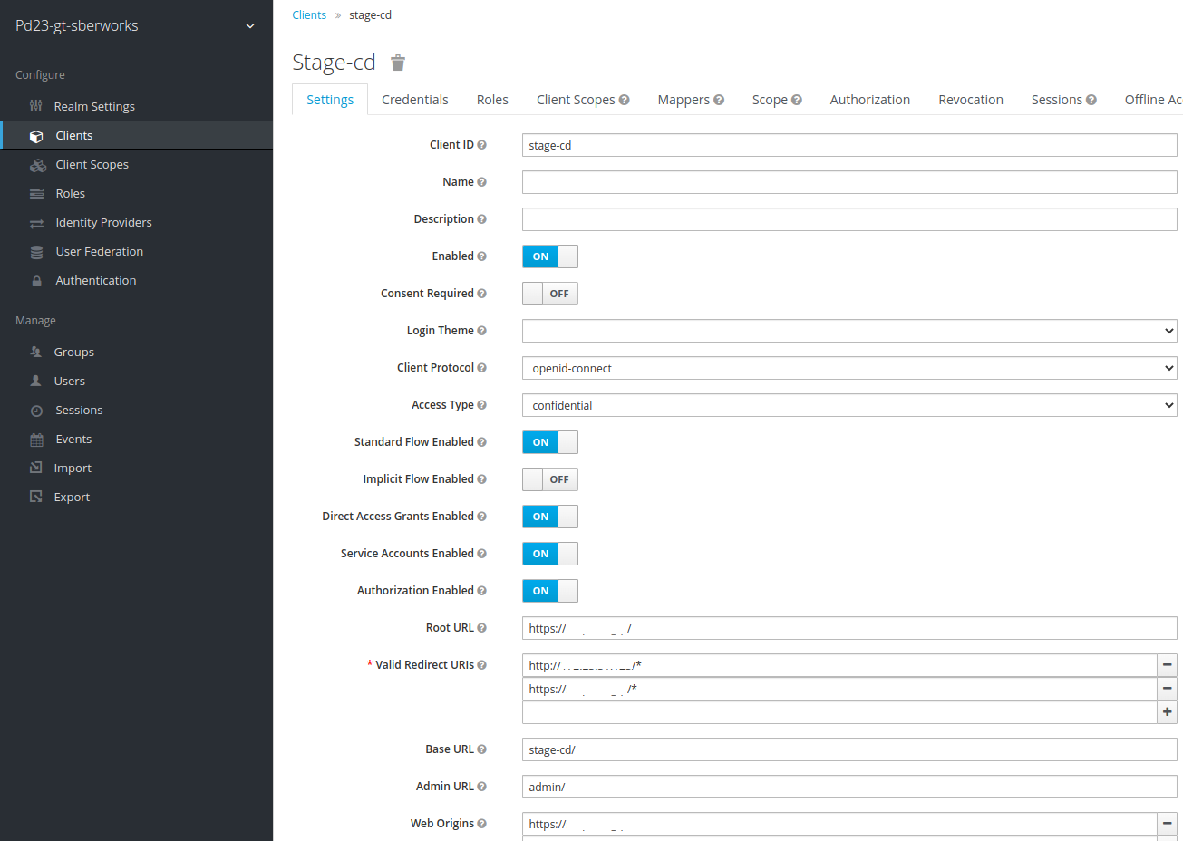 Сконфигурируйте KeyCloak. Перейдите на страницу клиента в разделе Clients и заполните соответствующие параметры во вкладке Settings: