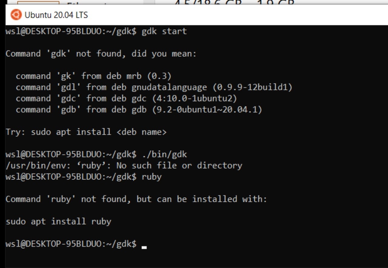 После перезагрузки консоли для работы в окружении WSL пропала подсветка в консоли и не доступна команда gdk: