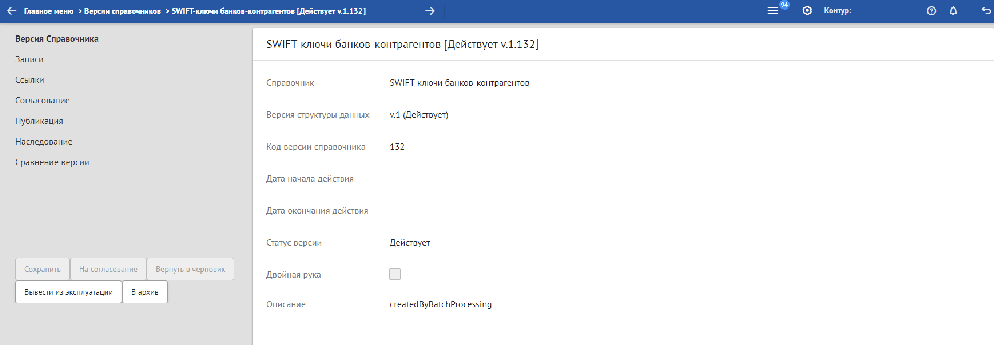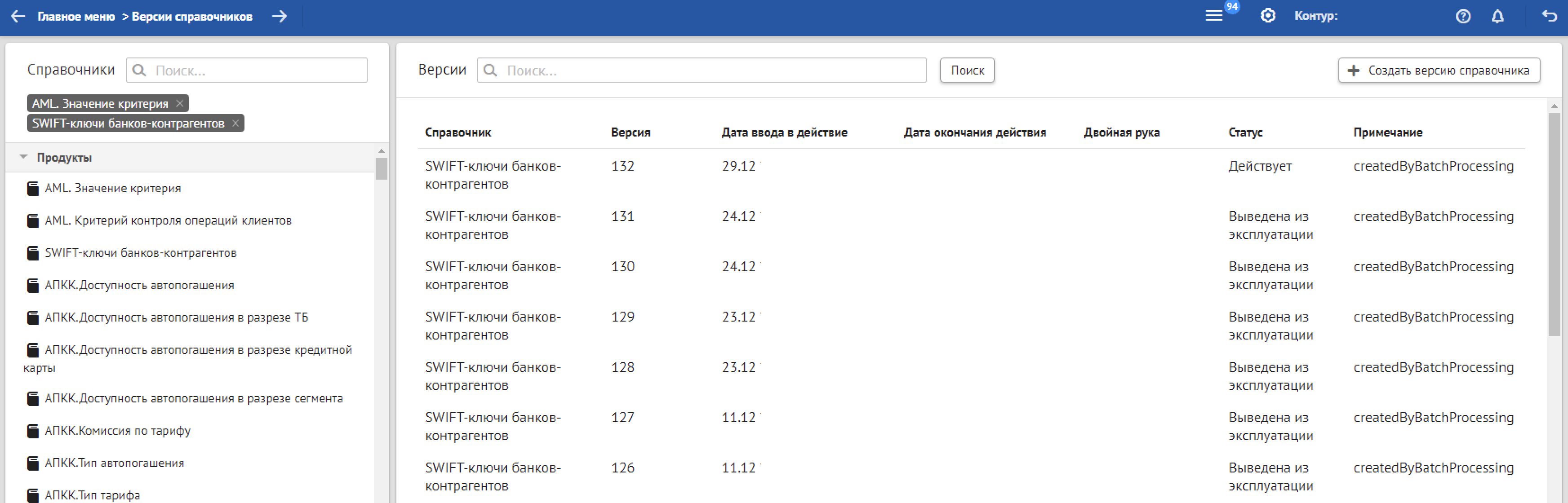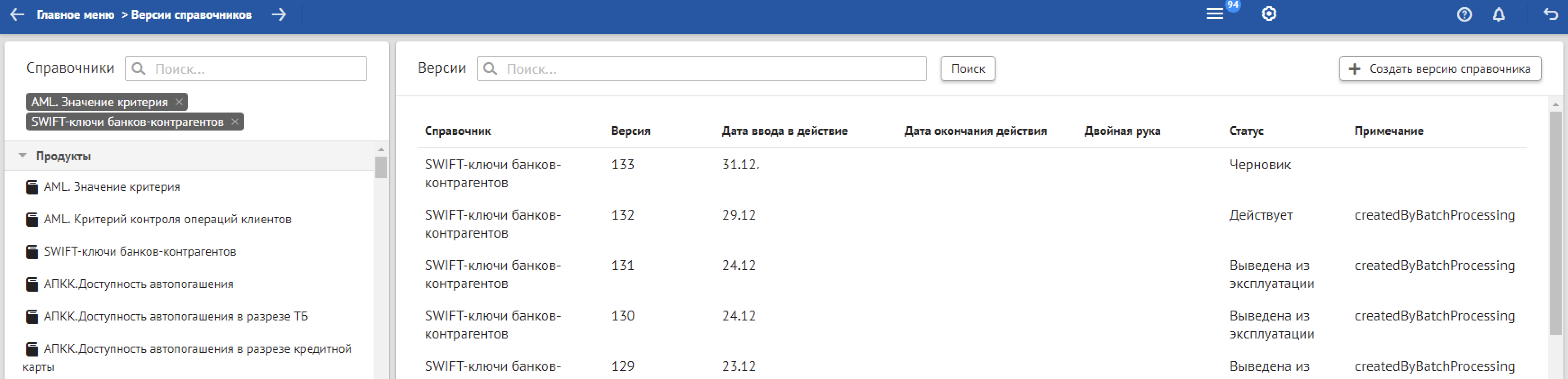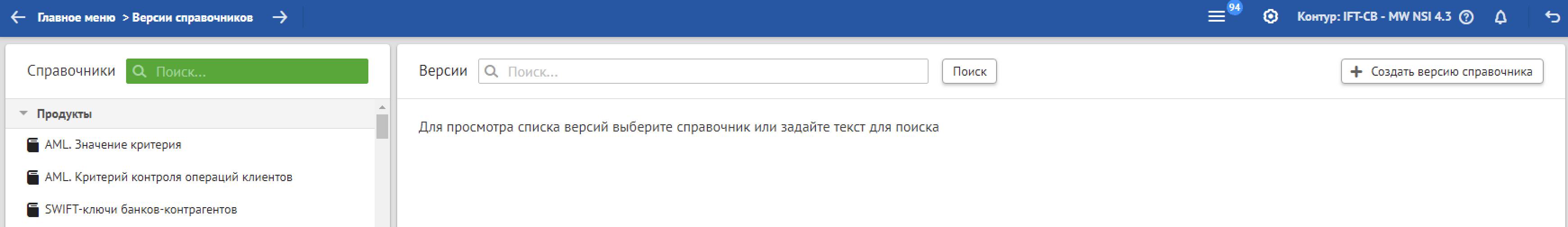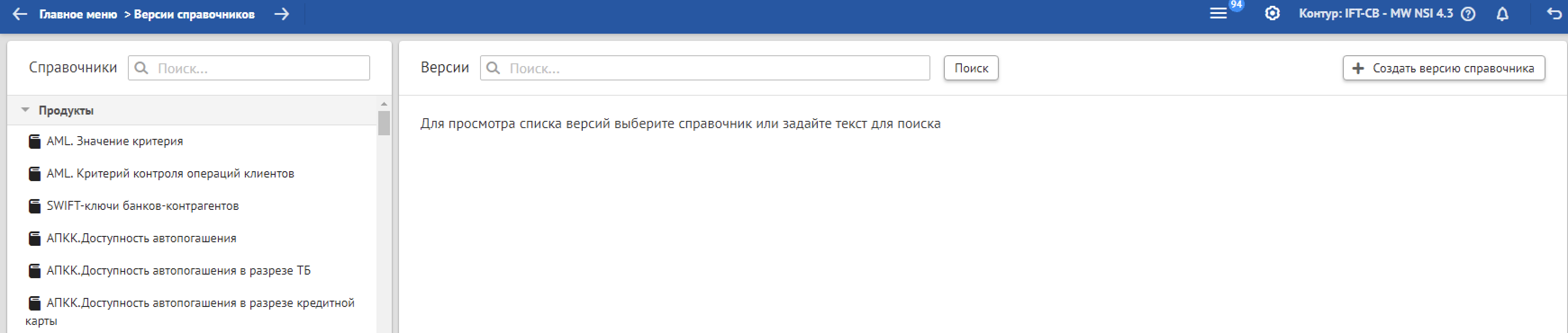 Версии справочников — в данном разделе осуществляется работа по версионированию справочников;